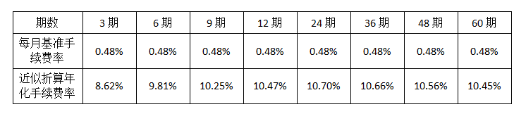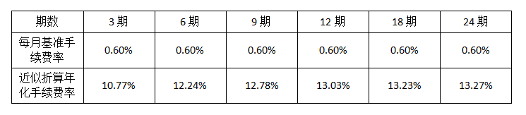 4、手续费计算:分期付款每期手续费=分期总金额*月手续费率。